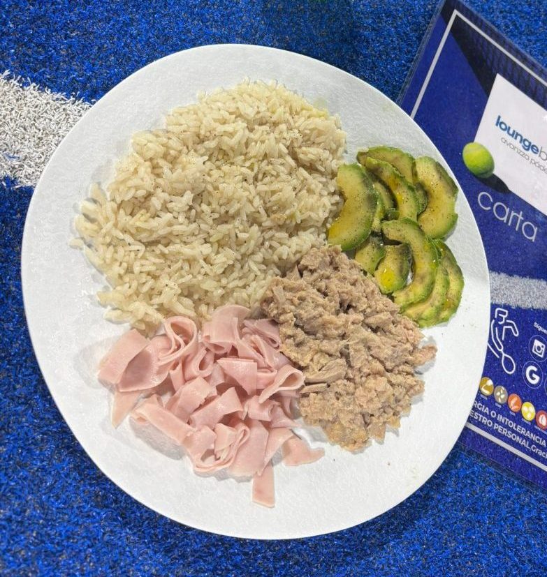 Ingredientes; arroz, tortilla francesa, pavo y queso fresco